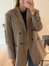 Dette beige, ternede blazer fra The Frankie Shop kombinerer stil og komfort i en moderne silhuet. I størrelse S/M er det ideelle valg til den modebevidste kvinde, der værdsætter alsidighed. Med en komposition bestående af 75% polyester, 23% rayon og 2% spandex er blazeren både holdbar og behagelig at have på. Den brune ternedetalje tilfører karakter, mens standen er som ny, hvilket sikrer et friskt look, uanset anledningen.