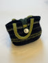 Denne filtet håndtaske i størrelse OS byder på et stribet mønster i sort og grøn, der tilføjer et unikt præg til enhver påklædning. Tasken er designet med en praktisk stor knaplukning, der gør den let at åbne og lukke. Med sin multifarvede skønhed passer den perfekt til kvinder, der ønsker at tilføje et stilfuldt accessory til hverdagen. Taskens stand er som ny, hvilket sikrer, at du får et kvalitetsprodukt til en reduceret pris.