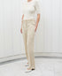 Denne Ganni strik t-shirt i størrelse S kombinerer komfort og stil på en uformel måde. Den råhvide farve giver et frisk udseende, veganske fibre i kompositionen af 41% uld, 40% akryl, 15% polyamid og 4% elastan sikrer en blød og strækbar pasform. Perfekt til lag-på-lag looks eller som det lette første lag, er denne bluse i strikstand, der nærmest er som ny, et ideelt valgfrit element i enhver kvindes garderobe.